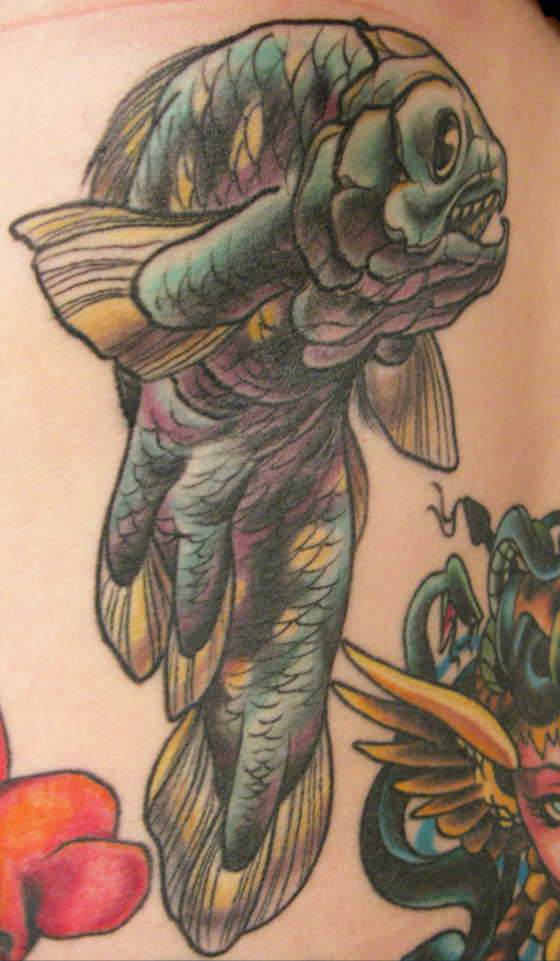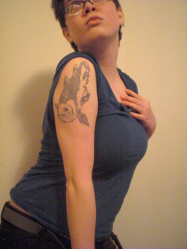 This beauty adorns Mary McCarthy (no artist info available). Photo from The Love Lab, which seems to be a fish science website. How awesome is it that they have a "tattoos" section?